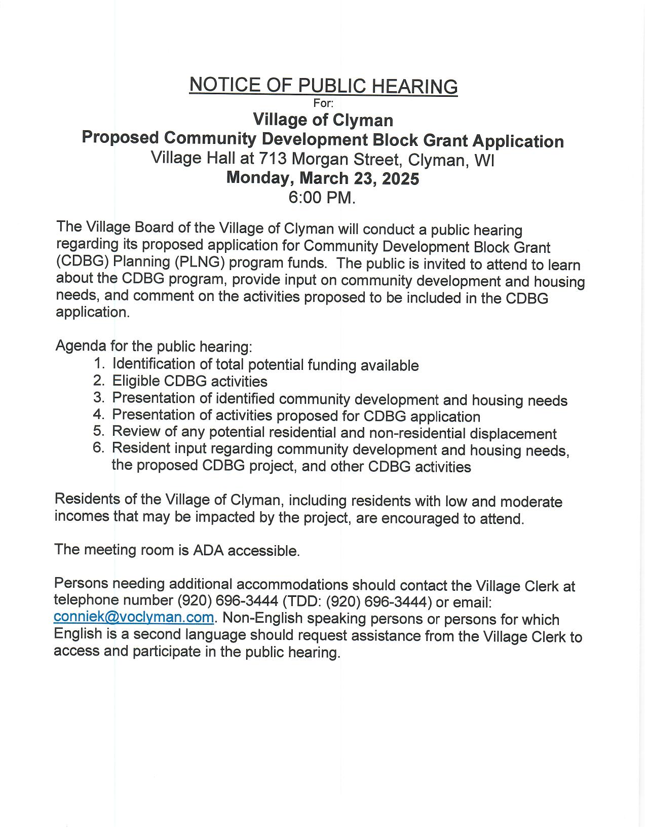 Public Hearing Notice for Proposed Community Development Block Grant Application